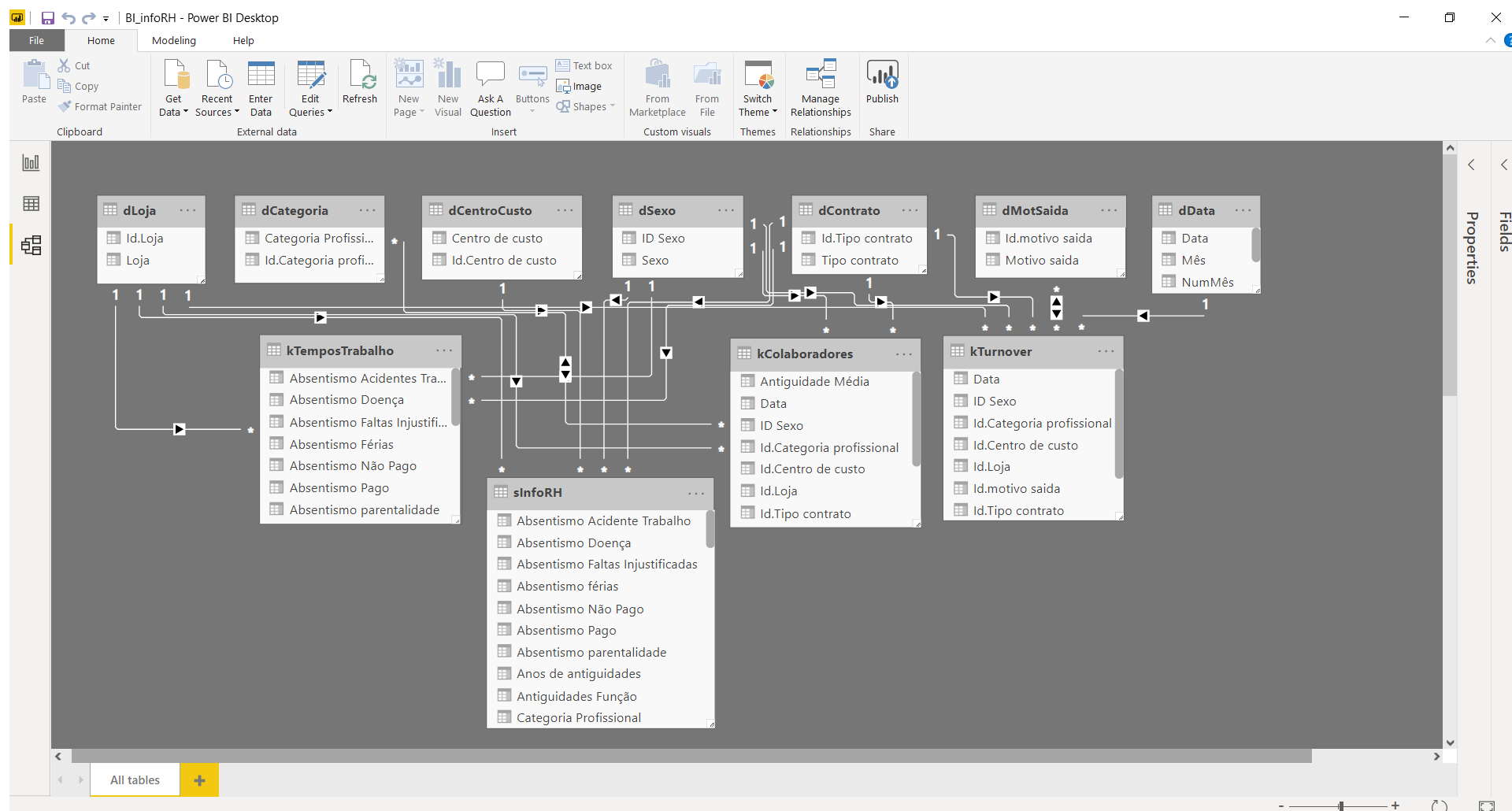 No que respeita a tabelas, usando a linguagem do Power BI, há a considerar as “tabelas de factos” e outras tabelas complementares, em particular as “tabelas de dimensão” que têm uma relação de 1 para N com tabelas de factos.