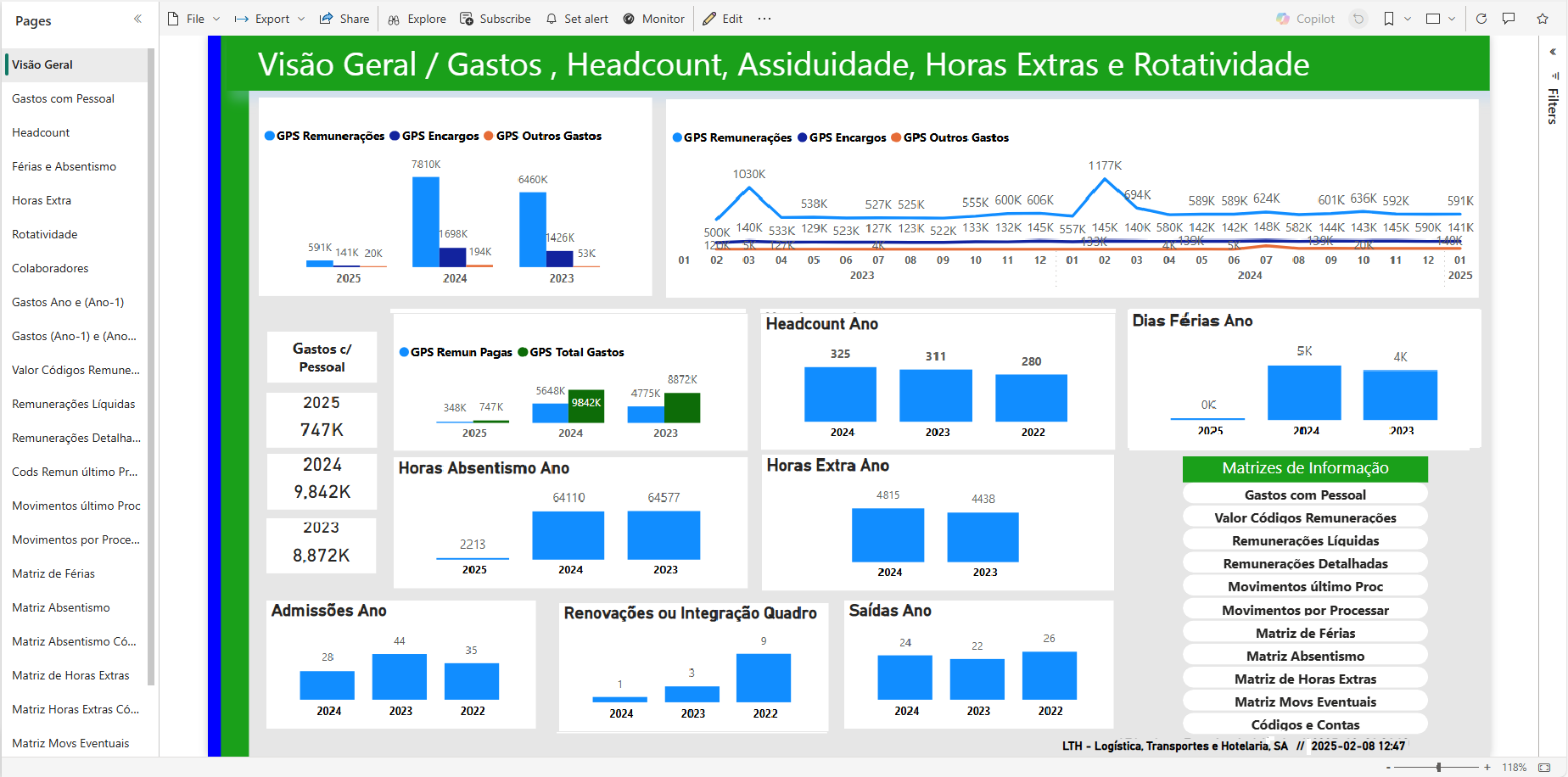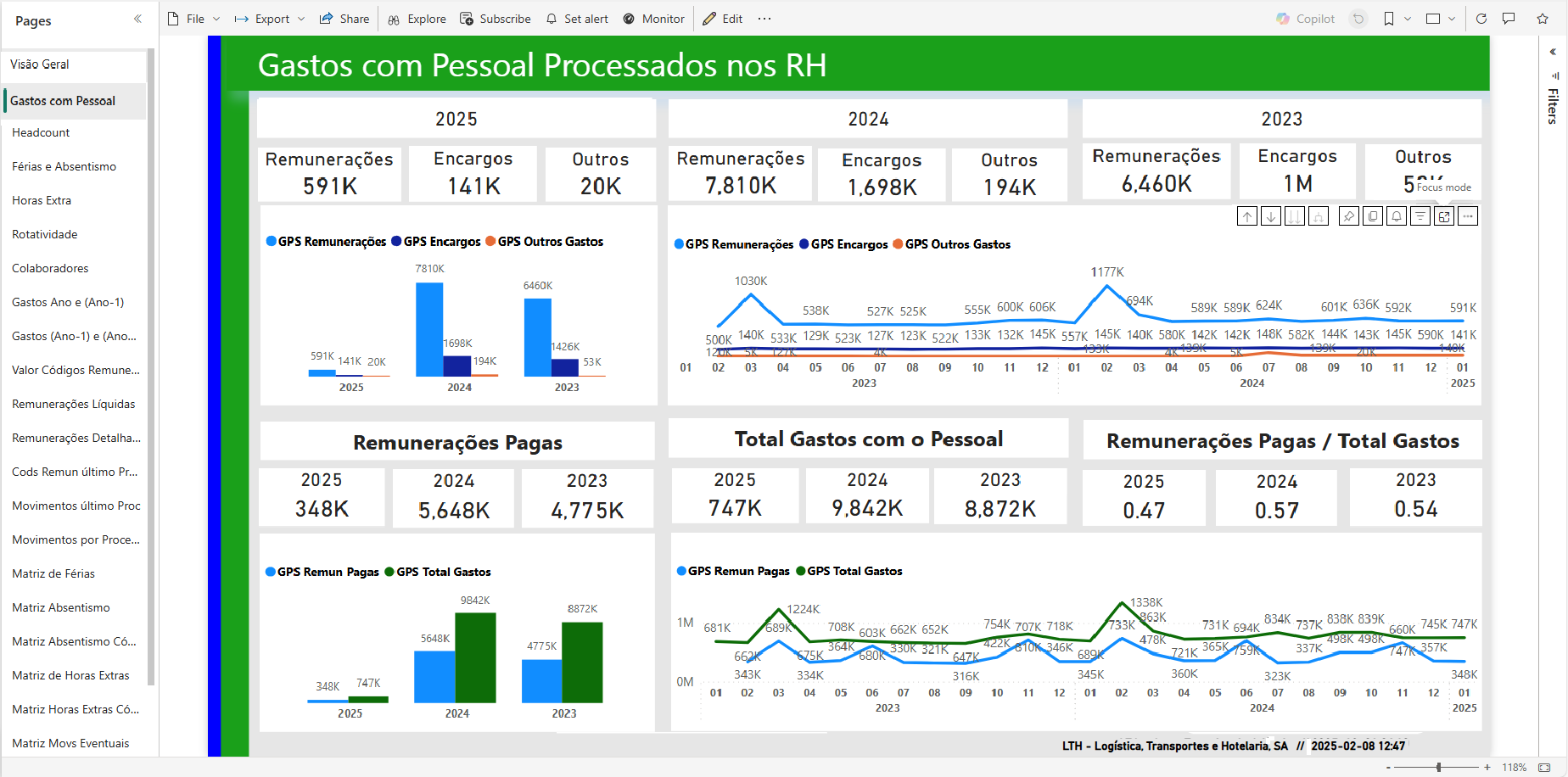 Como se vê pela data em baixo as visualizações foram atualizadas, o que é feito automaticamente na plataforma que usamos, em 2025-02-02 às 12:47, isto é no inicio ede 2025 só com praticamente um mês de gastos.