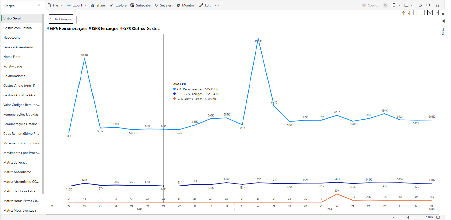 - Um exemplo de Focagem (uso da funcionalidade “Focus mode”) no gráfico da evolução dos Gsstos com o Pessoal