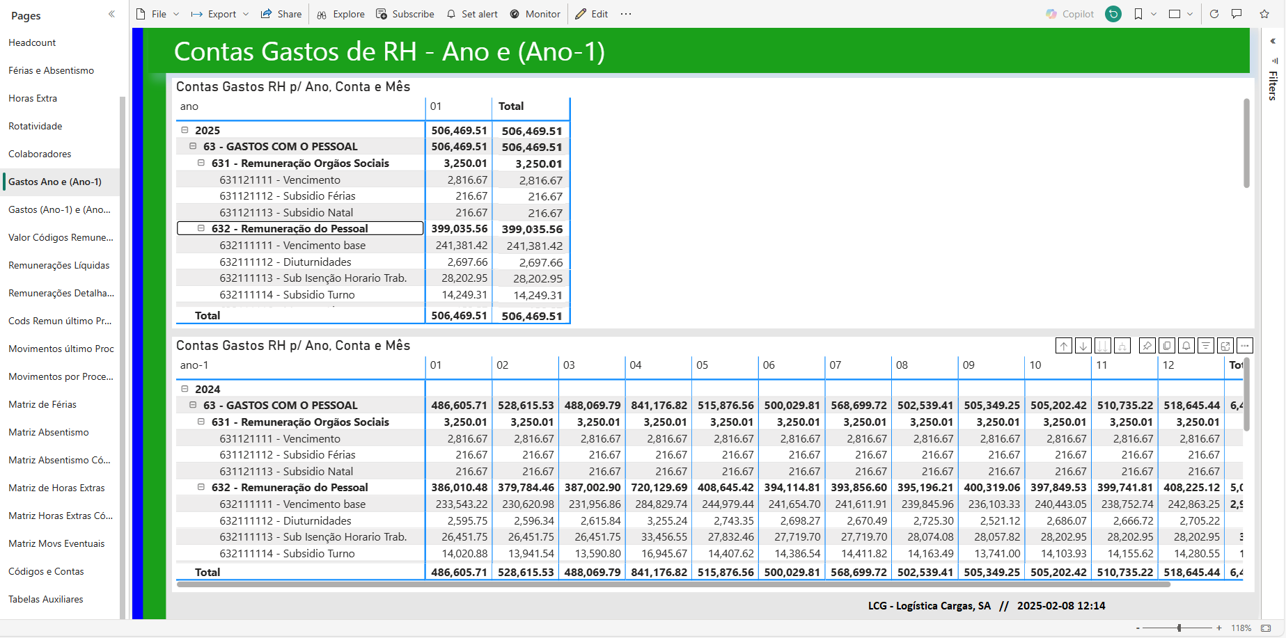 Note-se que, como se vê pelo índice, também temos, na página a seguinte a esta, a comparação entre (ano-1) e (Ano-2). No ano corrente (2025) só ainda há valores para o Mês 01 pois, como se vê em baixo à direita, esta página foi atualizada em 2025-02-08 às 12:14..